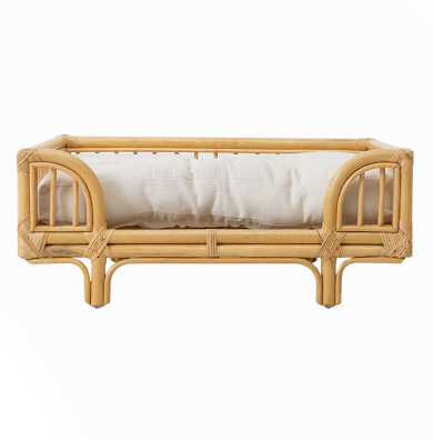 Natural Rattan Square Dog Bed Minimalist Handmade Pet Bed